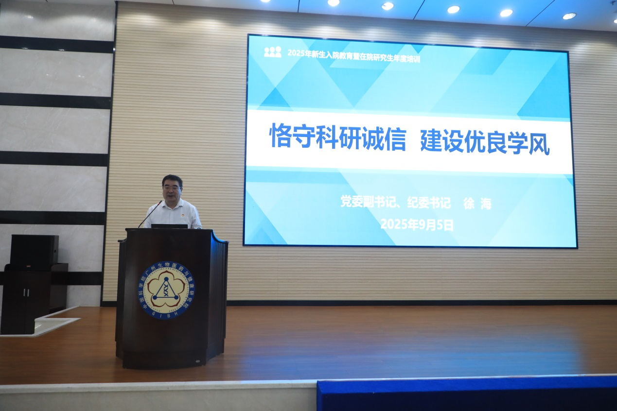 金秋九月,万象更新。为落实立德树人的根本任务,引导学生坚定理想信念、树立远大目标,9月5日,中国科学院广州生物医药与健康研究院(以下简称“广州健康院”)组织开展“书记讲党课”暨2025年学生“入院第一课”专题培训。新入院研究生及在院学生党员共同参加学习。