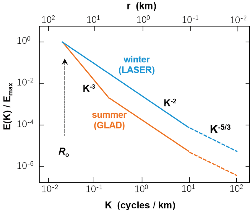 图1?基于漂流浮标观测数据推断的海洋动能谱特征。