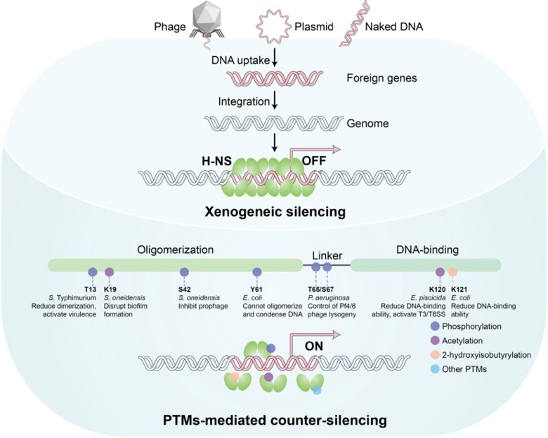 翻译后修饰是拮抗H-NS沉默的关键机制,与已知的抗沉默蛋白、小分子代谢物及蛋白酶解等途径协同作用,通过感知环境信号、传导调控指令,最终实现表型输出,助力细菌利用外源基因增强环境适应性。尤为重要的是,研究进一步提出,外源基因常编码修饰酶或抗沉默蛋白,在激活条件下解除H-NS介导的基因沉默。这一由外来元件参与的主动“转录解抑制”过程充分呈现了细菌与外来基因元件间的竞争与协作关系,是系统认识微生物中水平基因转移的重要视角。